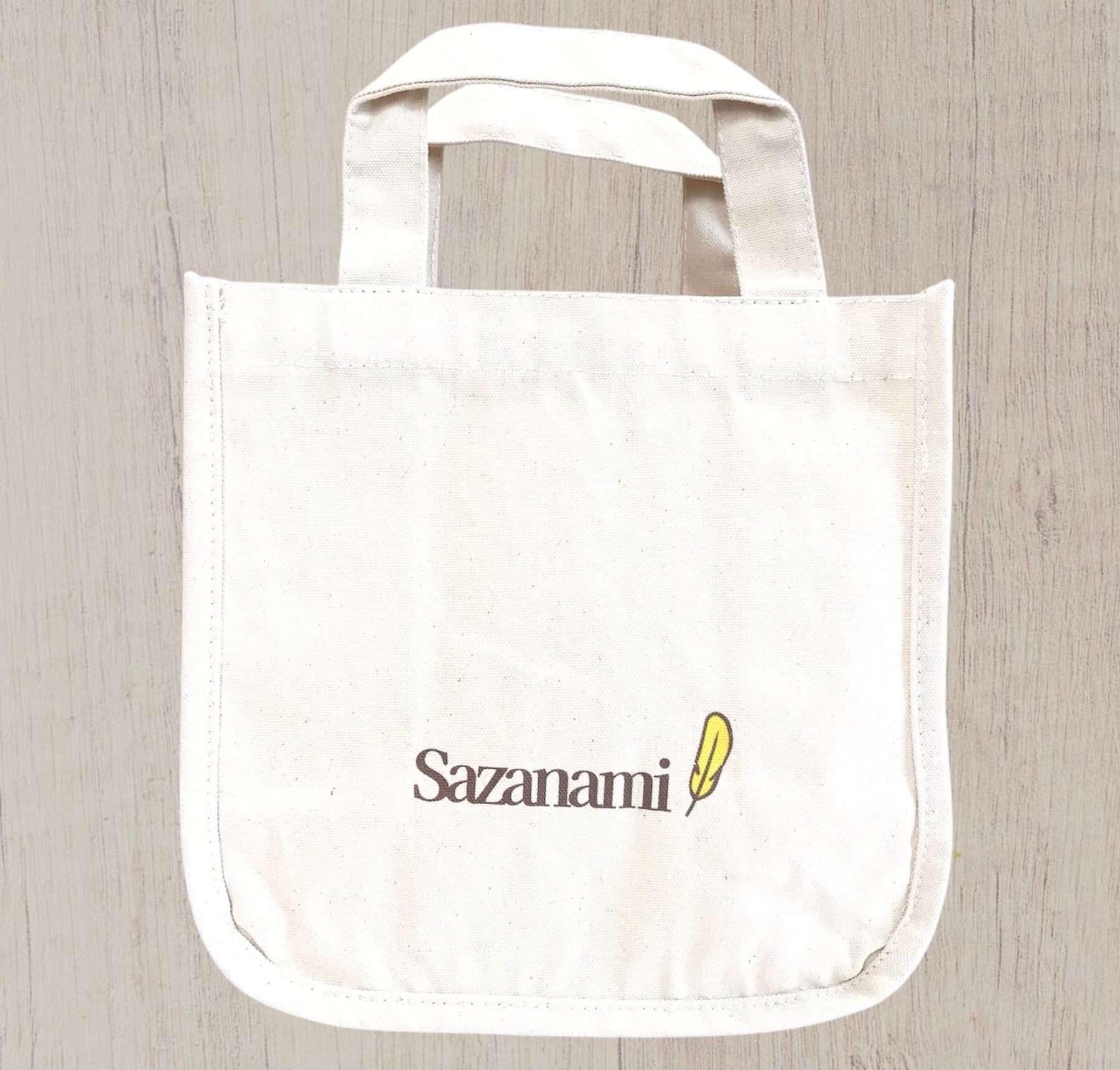 たっぷり12㎝のマチがあるので、ランチトートとしても、ちょっとしたお出かけにも使いやすいサイズです。裏面にはサザナミロゴ入り♪