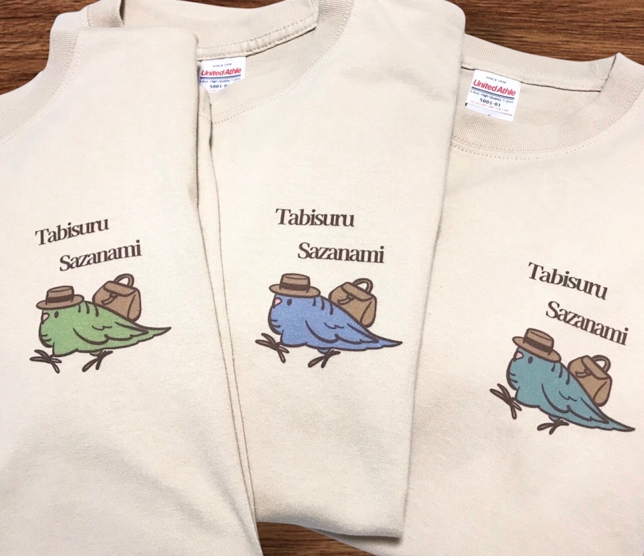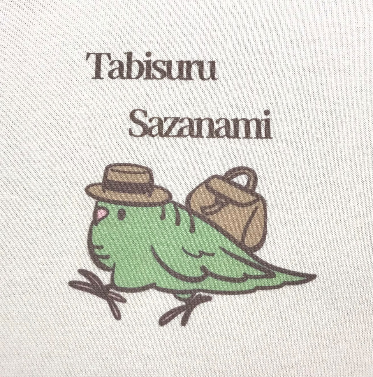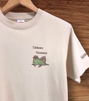 古い外国の絵本のような、どこかノスタルジック感漂うサザナミさんをイメージしましおた。ワンポイントTシャツかと思いきや、こっそり左袖にもサザナミロゴ入り!
